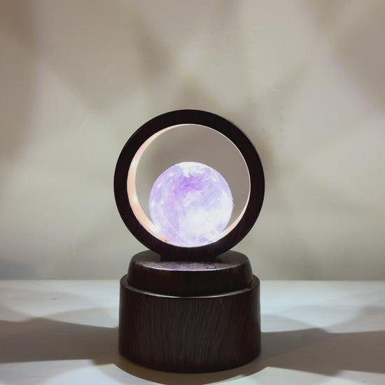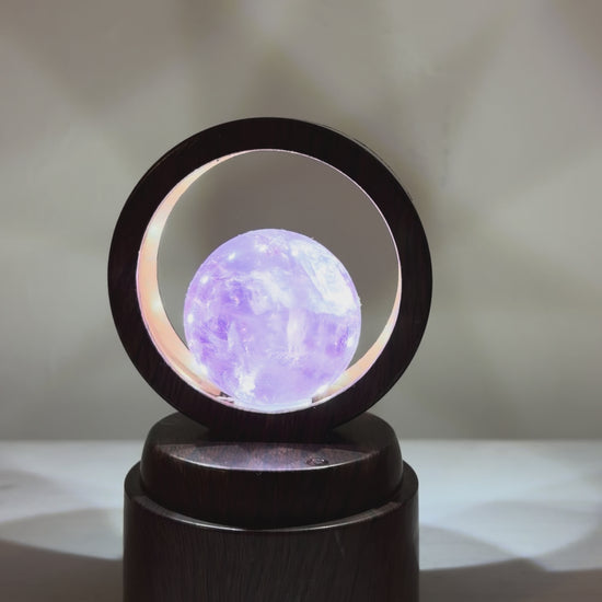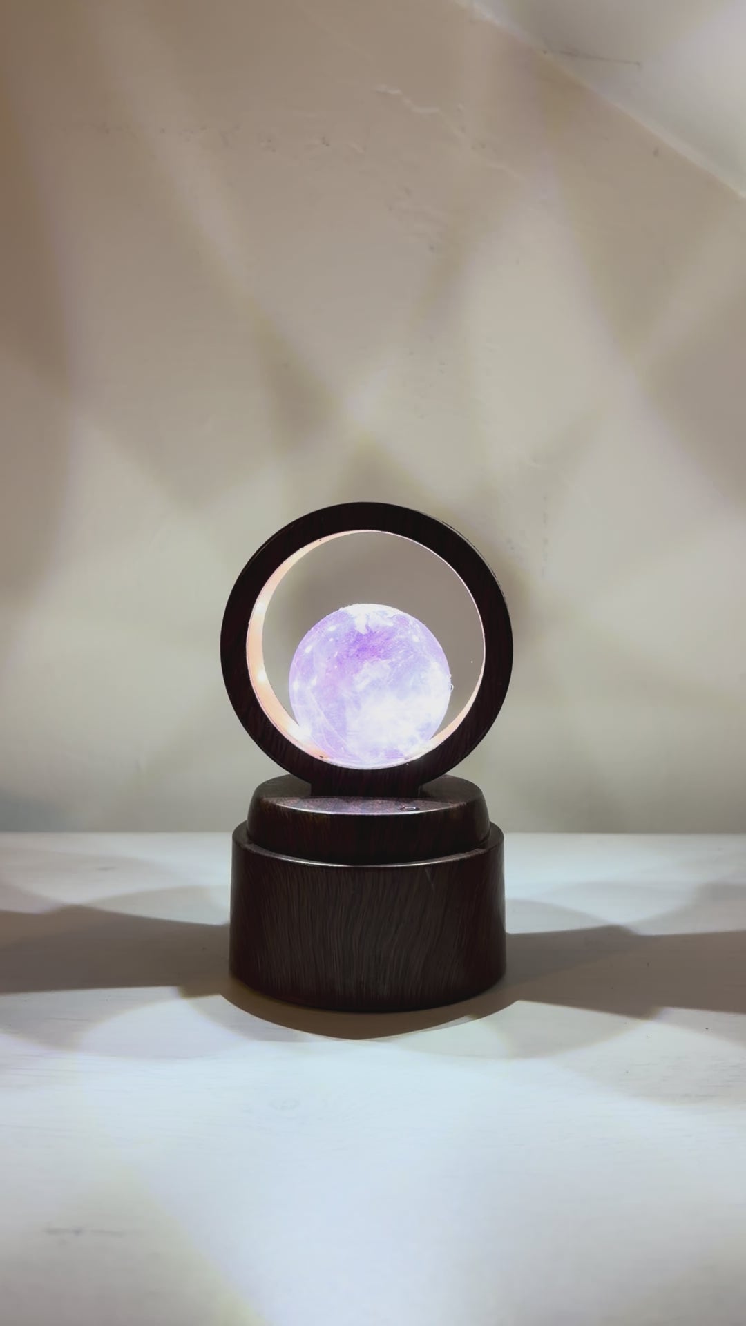 燈座可自動旋轉並發出柔和光線,讓水晶在光影中閃爍能量,營造出靜謐又療癒的氛圍。